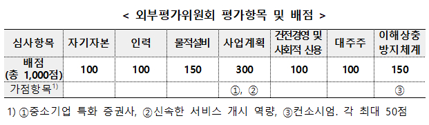컨소시엄 가점은 기존 스타트업 법인 자체에도 인정했다. 통상 금융회사 인가시 컨소시엄은 이해상충 방지 등을 위해 신설법인에 대해서만 인정해주는 것이 원칙이지만 스타트업의 컨소시엄 신설·투자 자본금 마련 부담을 고려한 조치다.