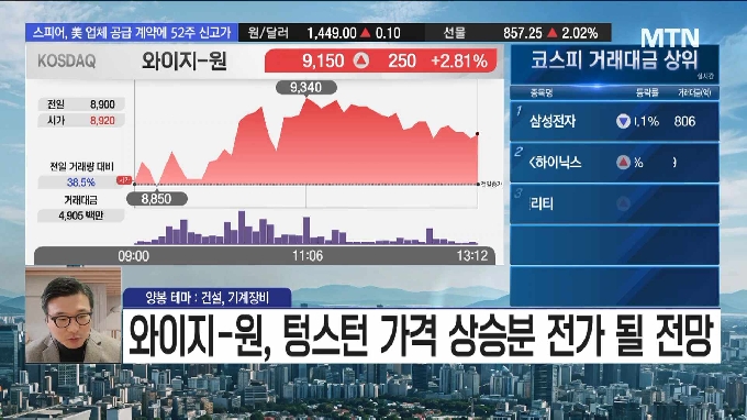 - 와이지-원, 텅스턴 가격 상승분 전가 될 전망