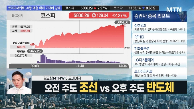 ▶▶▶ 오전 주도 조선 vs 오후 주도 반도체