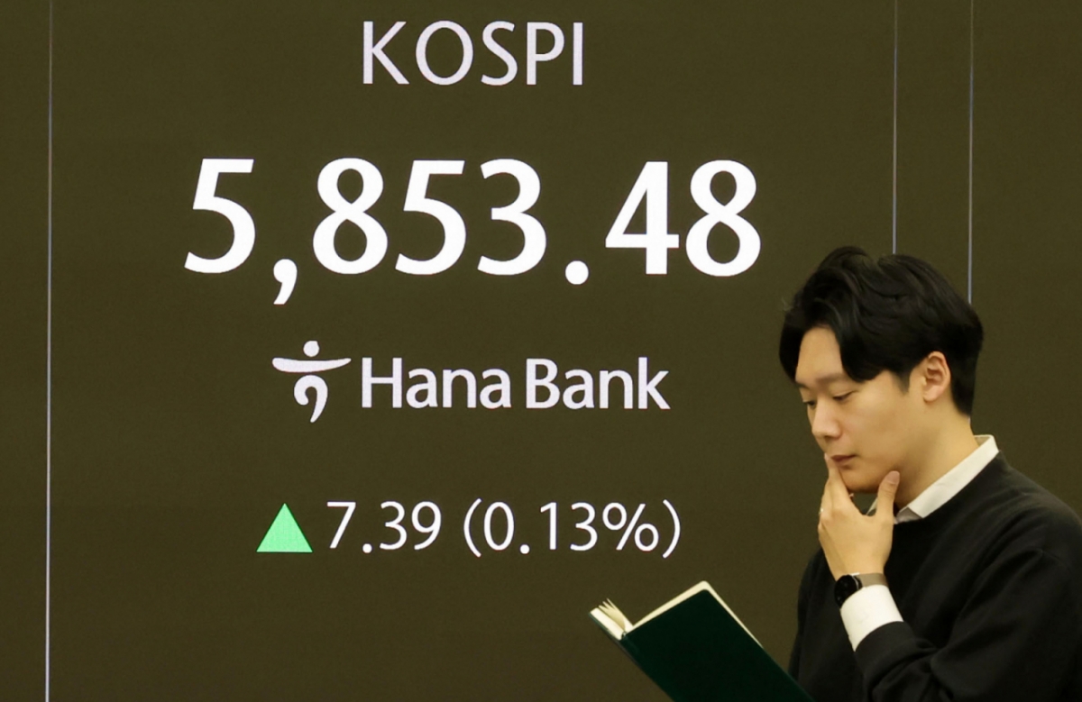 ![[서울=뉴시스] 홍효식 기자 = 코스피가 전 거래일(5846.09)보다 7.39포인트(0.13%) 오른 5853.48에 개장한 24일 오전 서울 중구 하나은행 딜링룸 전광판에 지수가 표시되고 있다. 코스닥 지수는 전 거래일(1151.99)보다 7.77포인트(0.67%) 오른 1159.76에 거래를 시작했다. 서울 외환시장에서 원·달러 환율은 전 거래일 주간거래 종가(1440.0원)보다 4.7원 오른 1444.7원에 출발했다. 2026.02.24. yesphoto@newsis.com /사진=홍효식](https://thumb.mt.co.kr/cdn-cgi/image/f=avif/21/2026/02/2026022408503274801_1.jpg)
