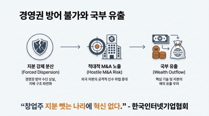 VC 업계 관계자는 "지분율이 낮은 창업자는 거대 자본이나 적대적 세력으로부터 기업을 지켜내기가 어렵다"며 "경영권이 흔들리는 회사에 돈을 태울 이유가 없다. 스타트업은 결국 자금 조달 통로가 막혀 위기를 겪게 될 것"이라고 내다봤다.