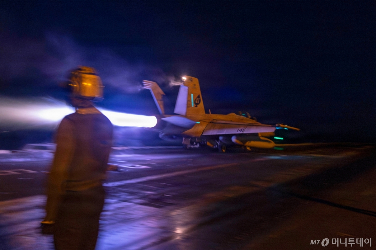 ![[에이브러햄 링컨함=AP/뉴시스] 1일(현지 시간) 미 해군 항공모함 에이브러햄 링컨호(CVN 72)에서 F/A-18E 슈퍼 호넷 전투기가 ‘에픽 퓨리' 작전 지원을 위해 출격하고 있다. 미 중부사령부(CENTCOM)는 이란 혁명수비대(IRGC)가 미 항공모함 에이브러햄 링컨호에 공격을 가했다는 주장에 “링컨호는 피격되지 않았다”며 “미사일은 근처에도 오지 못했다”라고 반박했다. 2026.03.02. /사진=민경찬](https://thumb.mt.co.kr/cdn-cgi/image/f=avif/21/2026/03/2026030307303778736_1.jpg)