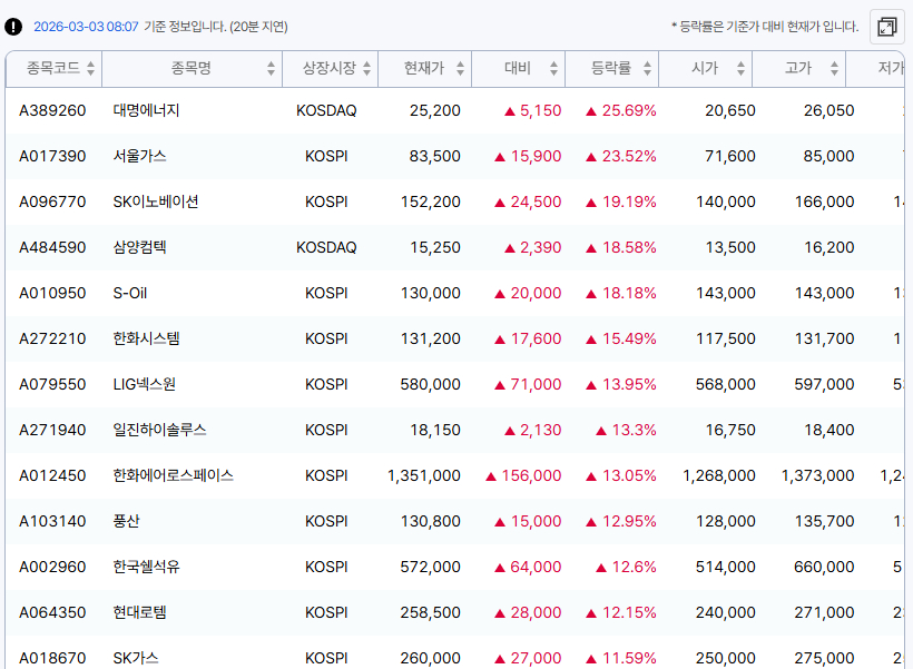 3일 오전 8시7분 기준 넥스트레이드에서 원유 정제·가스·방산 관련 종목들이 일제히 상승했다.