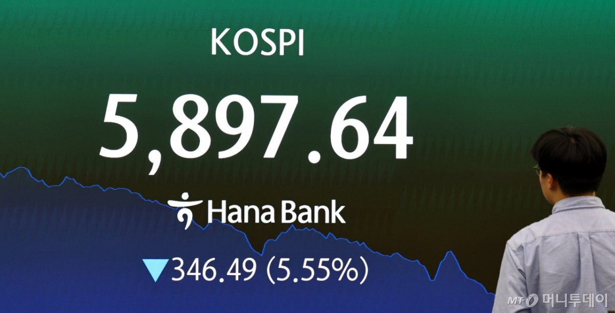 3일 오후 2시41분 코스피는 전 거래일 대비 6.02% 내린 5868.02를 나타내고 있다. 코스피가 6000선 아래로 내려온 것은 4거래일 만이다.