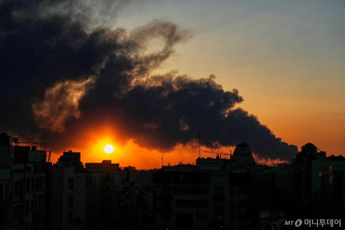 ![[테헤란=AP/뉴시스] 3일(현지 시간) 이란 테헤란에서 미국과 이스라엘의 군사 공격 이후 치솟는 연기 뒤로 해가 지고 있다. 2026.03.04. /사진=민경찬](https://thumb.mt.co.kr/cdn-cgi/image/f=avif/21/2026/03/2026030507490465048_1.jpg)