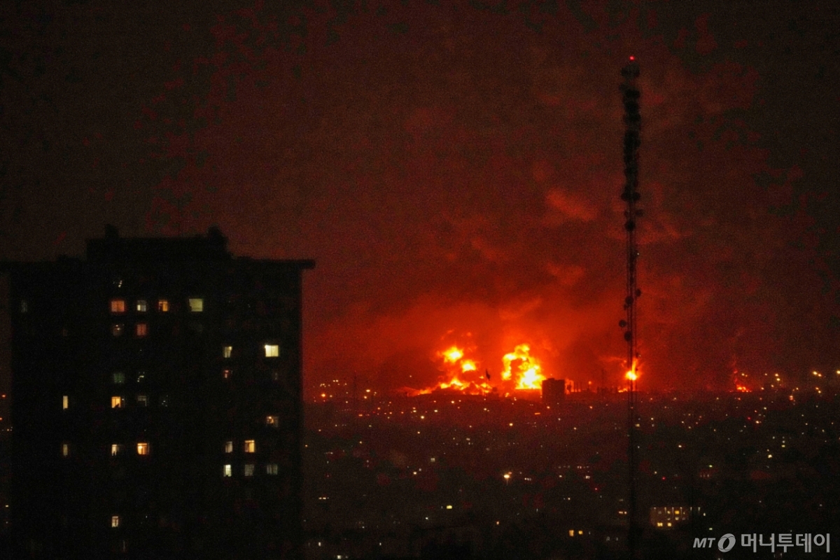 ![[테헤란=AP/뉴시스] 미국-이스라엘과 이란 간 전쟁이 이어지고 있는 가운데 7일(현지 시간) 이란 테헤란의 석유 저장 시설에서 불길이 치솟고 있다. 2026.03.08 /사진=](https://thumb.mt.co.kr/cdn-cgi/image/f=avif/21/2026/03/2026030908211182139_1.jpg)