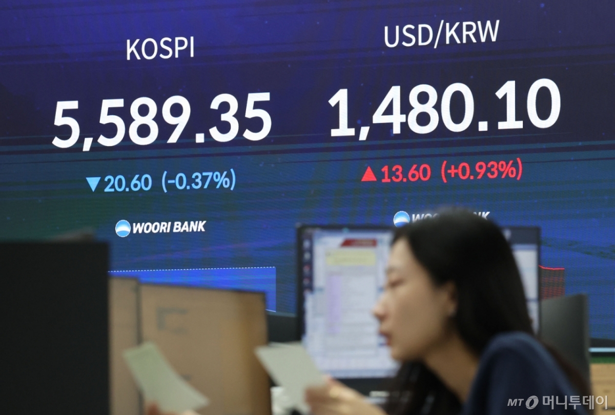 ![[서울=뉴시스] 권창회 기자 = 12일 오전 서울 중구 우리은행 딜링룸에서 딜러들이 업무를 보고 있다. 코스피가 전 거래일 대비 42.30포인트(0.75%) 하락한 5567.65에 출발했다. 원달러 환율은 13.6원 오른 1480.1원으로, 코스닥지수는 4.83포인트(0.42%) 내린 1132.00에 거래를 시작했다. 2026.03.12. kch0523@newsis.com /사진=권창회](https://thumb.mt.co.kr/cdn-cgi/image/f=avif/21/2026/03/2026031211032419480_1.jpg)