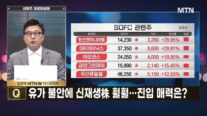 정종택 MTNW 어드바이저는 지앤비에스 에코를 추천주로 제시했다. 지앤비에스 에코는 작년 4분기 실적 턴어라운드를 완료했으며, 세계 최초 '무폐수 플라즈마 스크러버' 기술력을 보유하고 태양광 스크러버 사업을 병행하고 있다. 아이린 MTNW 어드바이저는 현대비앤지스틸을 추천주로 제시했으며, 현대비앤지스틸은 국내 최초 네오디뮴계 희토류 영구자석을 생산하고 현대차 새만금 투자 인프라 관련주로 부각됐다.