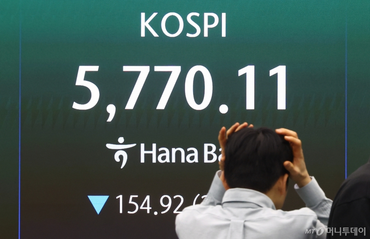 19일 코스피는 전날 대비 161.81포인트(2.73%) 내린 5763.22를 기록했다. 전날 5900대까지 올랐던 코스피는 이날 출발과 동시에 5700대로 미끄러졌다.