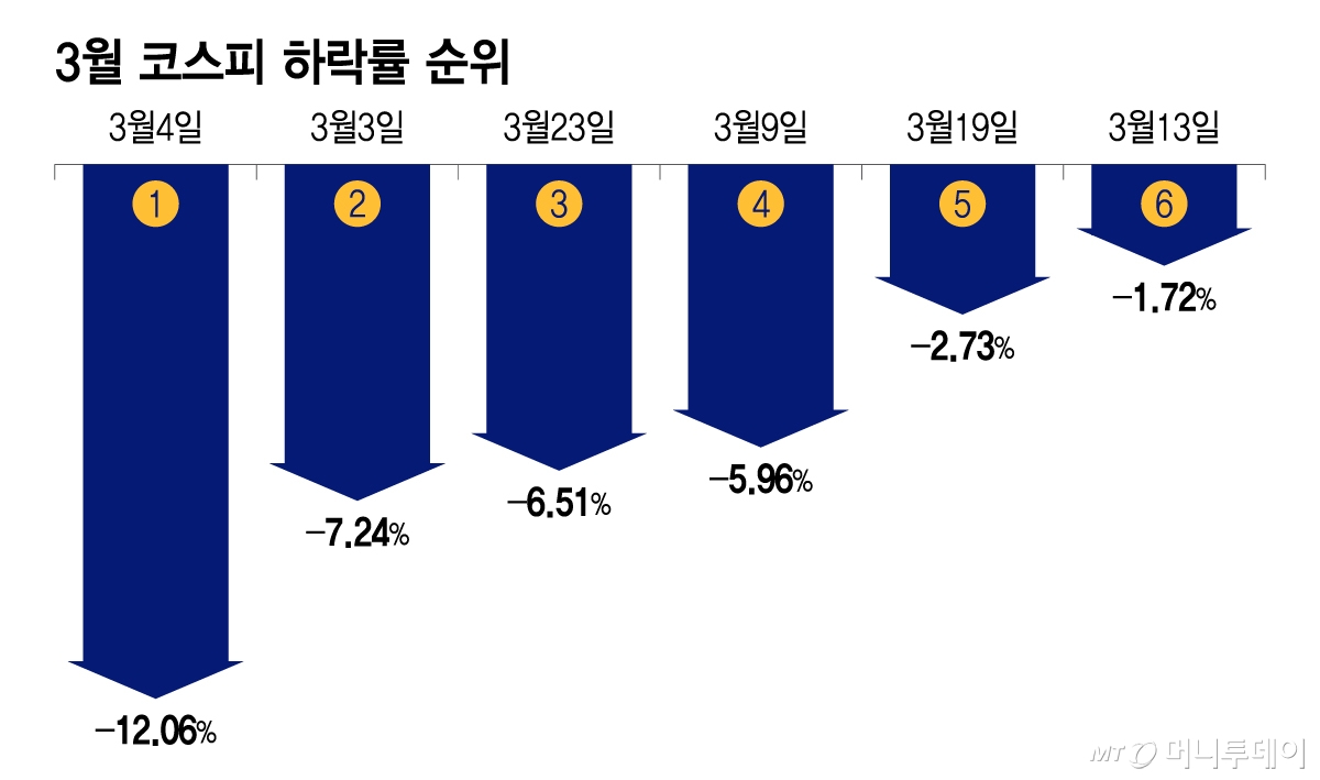 이날 한국거래소(KRX)에 따르면, 코스피와 코스닥 모두 지난 한 주간 어렵게 올려놓은 상승분 이상의 지수를 반납했다. 코스피는 하루 동안 6.49% 하락했고, 코스닥은 5.50% 떨어지는 이른바 '블랙먼데이' 흐름이 이어졌다.