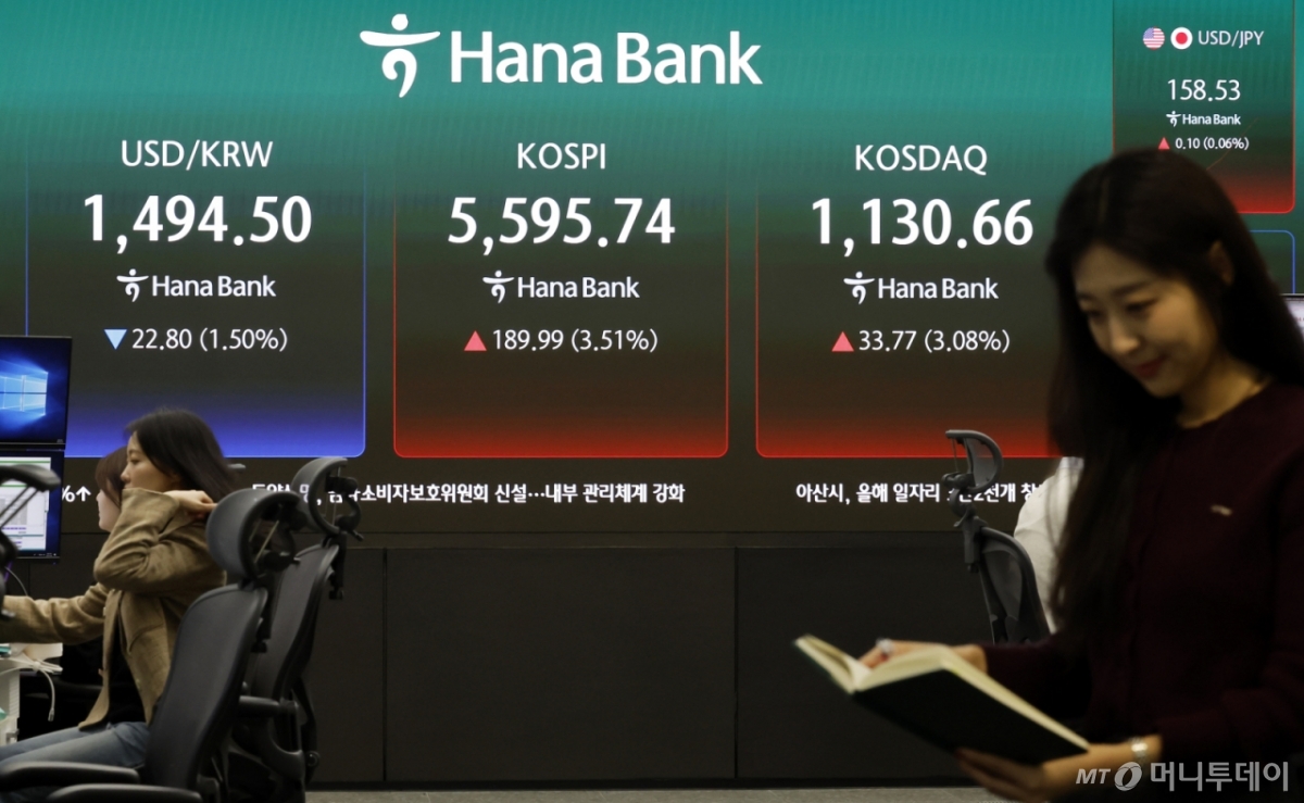 24일 오전 9시 26분 현재 코스피 지수는 전일대비 201.96포인트(3.74%) 상승한 5607.71에 거래되고 있다. 이날 코스피는 232.45포인트(4.30%) 오른 5638.20으로 출발해 강세장을 펼치고 있다.