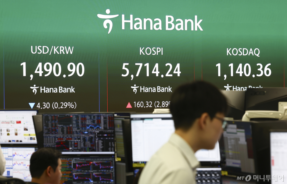 ![[서울=뉴시스] 김근수 기자 = 코스피는 전 거래일(5553.92)보다 126.41포인트(2.28%) 상승 출발한 25일 서울 중구 하나은행 본점 딜링룸에서 직원이 업무를 보고 있다. 코스닥 지수는 전 거래일(1121.44)보다 11.87포인트(1.06%) 오른 1133.31에 거래를 시작했다. 서울 외환시장에서 원·달러 환율은 전 거래일 주간거래 종가(1495.2원)보다 2.2원 내린 1493.0원에 출발했다. 2026.03.25. ks@newsis.com /사진=김근수](https://thumb.mt.co.kr/cdn-cgi/image/f=avif/21/2026/03/2026032515430879095_1.jpg)