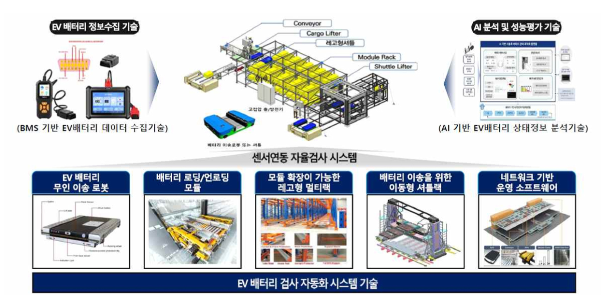 이번 신제품은 공작기계 및 로봇 자동화 기술에 AI(인공지능)와 5G 특화망 기반 통신 기술을 결합한 정밀 검사 설비다. 자체 개발한 역공학 알고리즘을 적용해 전기차의 배터리 관리 시스템(BMS) 데이터를 차량 진단기(OBD) 단말기로 실시간 수집한다. 이후 수집된 데이터를 클라우드 환경에서 인공지능으로 분석해 최소 30분에서 최대 2시간 이내에 검사 및 진단을 완료한다.