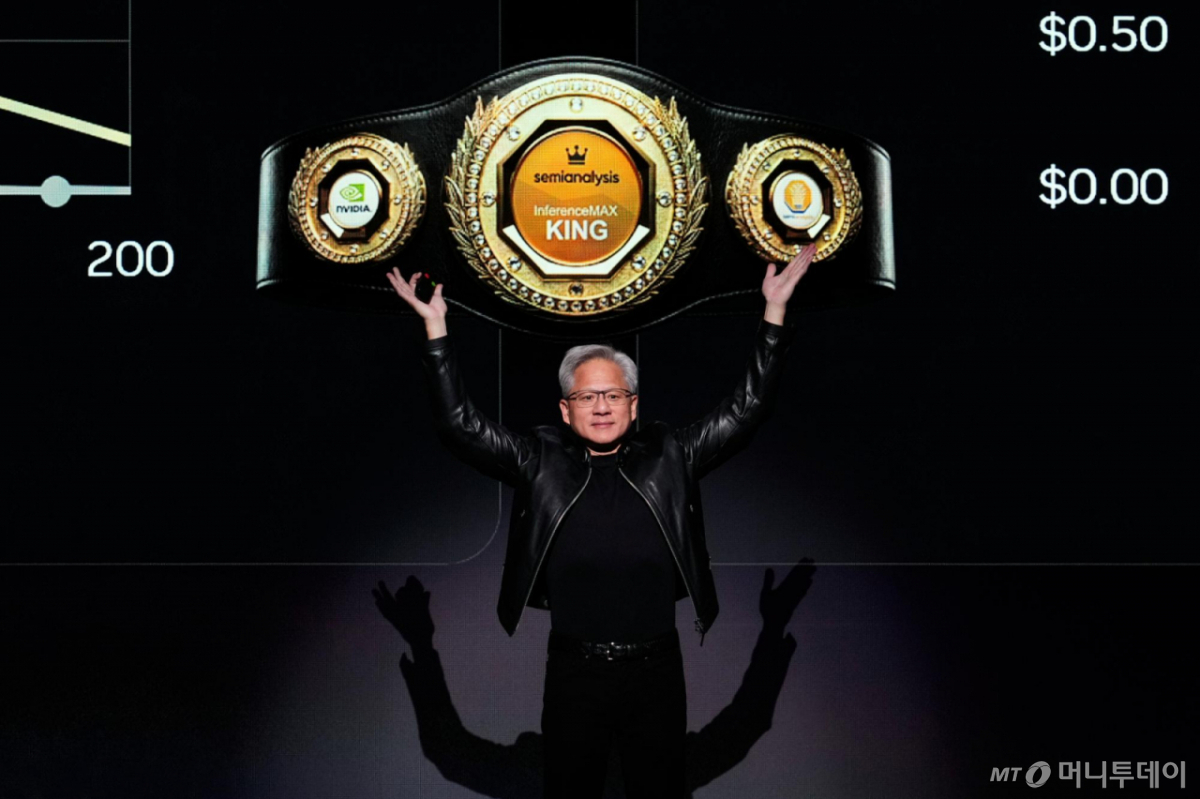 ![[새너제이=AP/뉴시스] 젠슨 황 엔비디아 최고경영자(CEO)가 16일(현지 시간) 미 캘리포니아주 새너제이 SAP 센터에서 열린 엔비디아의 인공지능(AI) 콘퍼런스 'GTC 2026'에서 기조연설하고 있다. 2026.03.17. /사진=민경찬](https://thumb.mt.co.kr/cdn-cgi/image/f=avif/21/2026/03/2026032717381969909_1.jpg)
