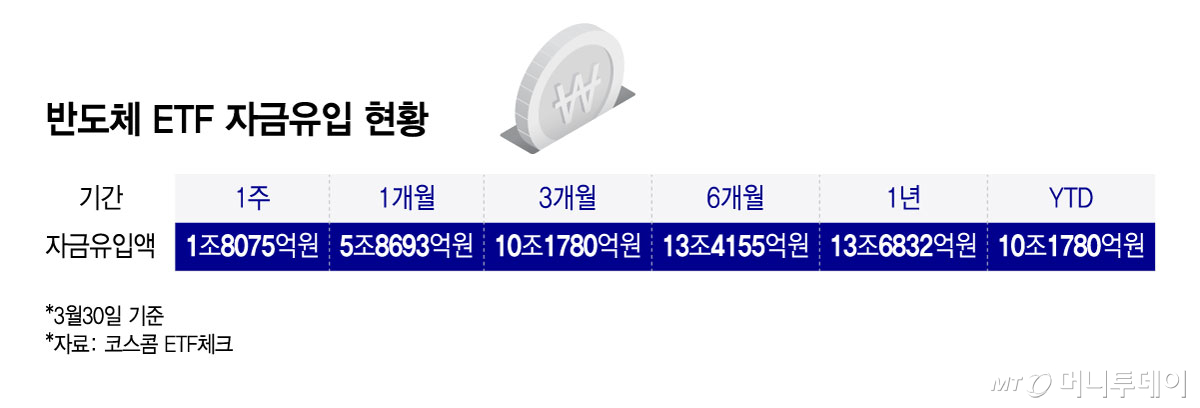 미국과 이란 전쟁 장기화와 터보퀀트발 반도체 산업 둔화 우려에도 불구하고 반도체 ETF(상장지수펀드)에 오히려 자금이 몰리고 있다.