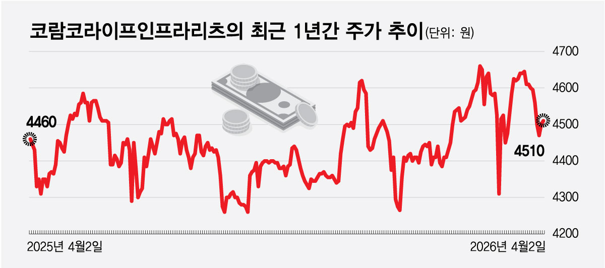코람코리츠는 일반적인 상장리츠에 비해 비교적 안정적인 재무구조를 설계하고 있지만 자산 감가상각과 95% 이상 배당금 지급 등 부담으로 매년 결손금이 쌓인다. 지난해말 기준 미처리결손금은 168억원으로 전년 대비 76억원 증가했다. 당기순이익은 같은 기간 123억원에서 67억원으로 반토막 났다. 이에 따라 주가는 2024년부터 5000원을 넘어서지 못하고 박스권에 갇혀 있다.