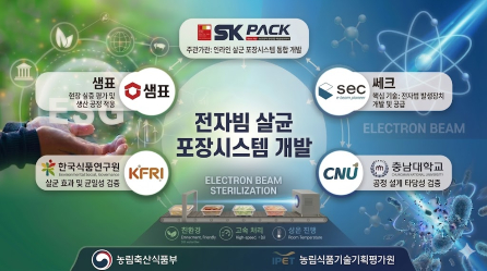 주관기관인 에스케이팩은 인라인 살균 포장시스템을 통합 개발하며, 쎄크는 핵심인 전자빔 발생장치 개발 및 공급을 전담한다. 한국식품연구원과 충남대학교는 살균 효과 및 균일성 검증, 성능 기준 수립을 맡는다.