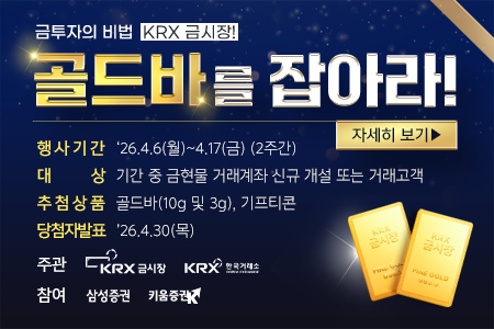 한국거래소가 오는 17일까지 삼성증권(97,100원 ▲3,700 +3.96%)·키움증권(424,000원 ▲12,000 +2.91%)과 금현물 계좌 신규·기존 고객을 대상으로 'KRX금시장 골드바를 잡아라' 이벤트를 연다고 6일 밝혔다.