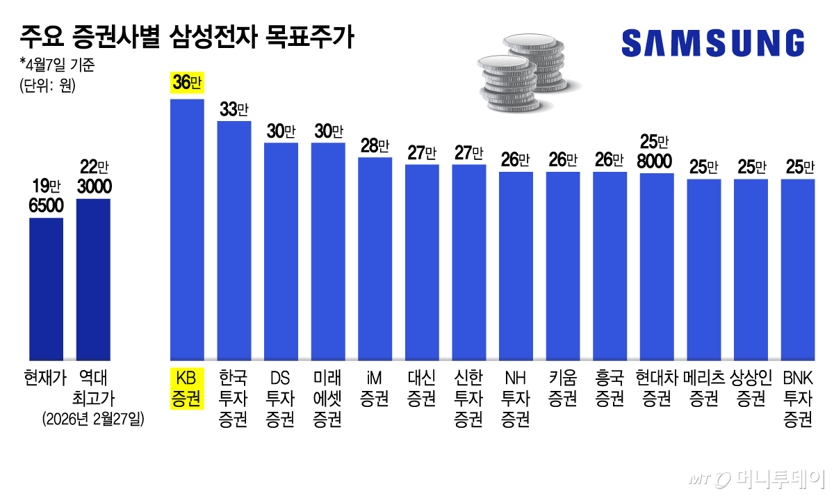 주가 상승 여력도 넉넉하다. 이날 총 3개 증권사가 삼성전자의 목표주가를 상향 조정했다. KB증권은 이날 삼성전자 목표가를 36만원, DS투자증권은 30만원, 상상인증권은 25만원으로 제시했다. 지난 6일에는 흥국증권이 26만원, 신한투자증권이 27만원, 한국투자증권이 33만원으로 목표주가를 올려잡았다.