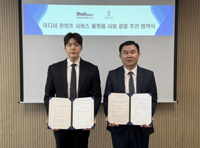 인공지능(AI) 전문 기업 모아데이타(1,366원 ▼42 -2.98%)는 콘덴츠 플랫폼 기업 레쥬와 공동사업을 위한 업무협약(MOU)을 체결했다고 9일 밝혔다.