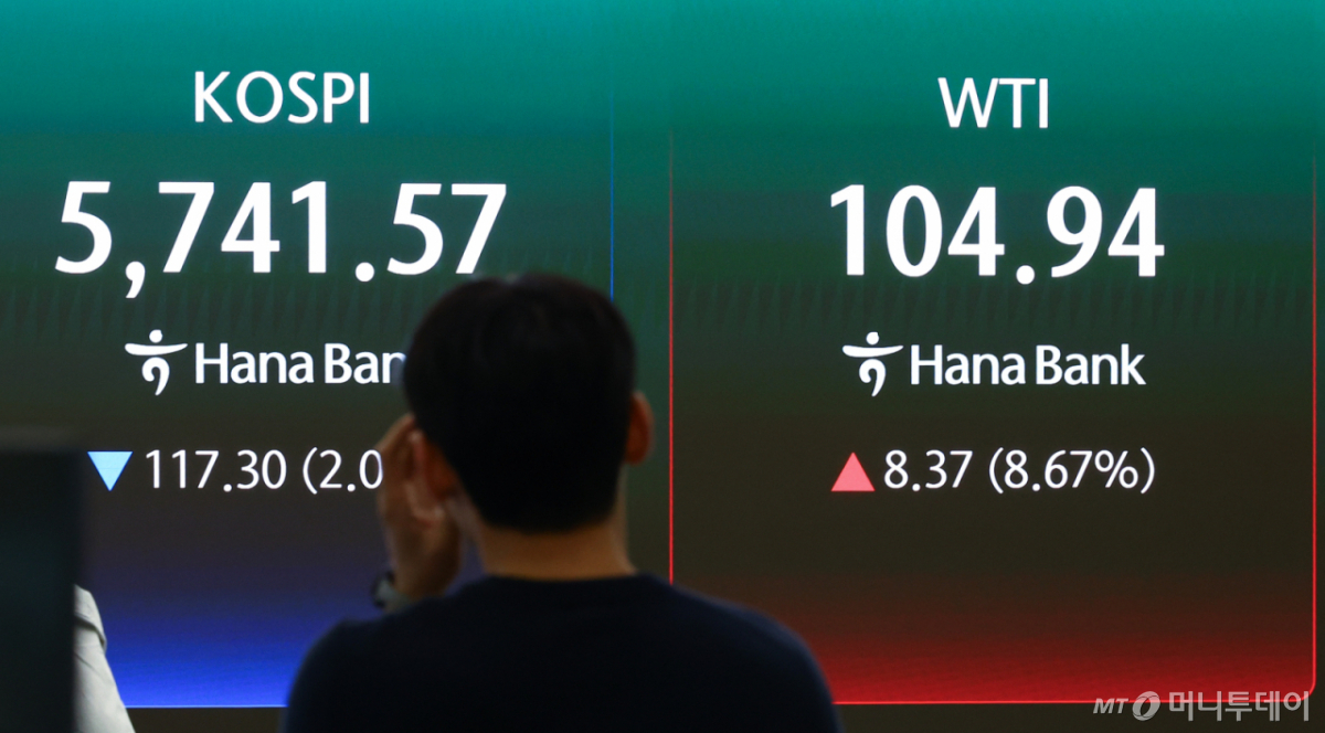![[서울=뉴시스] 황준선 기자 = 미국과 이란의 휴전 불확실성이 커진 13일 오전 서울 중구 하나은행 딜링룸 전광판에 미국 서부텍사스산 원유(WTI) 거래가와 코스피가 송출되고 있다. 2026.04.13. hwang@newsis.com /사진=황준선](https://thumb.mt.co.kr/cdn-cgi/image/f=avif/21/2026/04/2026041308440669691_1.jpg)