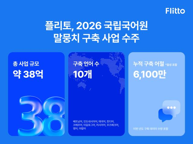 인공지능(AI) 데이터 및 솔루션 전문 기업 플리토(11,210원 ▼30 -0.27%)가 국립국어원이 주관하는 ‘2026년 한국어-외국어 말뭉치 구축 사업’의 수행 기업으로서 사업 수주에 성공했다고 13일 밝혔다.