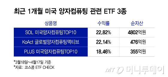 다만 이들 ETF는 올해 1월 한 차례 급락을 겪는 등 변동성이 큰 모습도 보였다. 금융투자업계 전문가들은 주가가 실적보다 기대감에 민감하게 반응하는 구조고 단기 급등 이후 나타난 자연스러운 조정 현상이라고 분석한다. 박우열 신한투자증권 연구원은 "양자컴퓨터 기업들은 매출 면에서는 계속 적자라 펀더멘털(기초 체력)이 부재한 상황"이라며 "이렇다 할 호재가 없던 구간이어서 상승 동력이 부족했다"고 말했다.