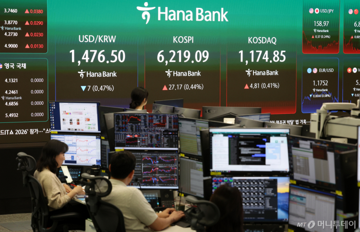 서울 외환시장에서 원/달러 환율은 전 거래일 대비 6.3원 내린 1477.2원에 주간 거래를 마쳤다.