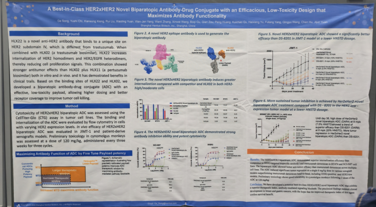 이번 학회에서 헨리우스가 발표한 초록에 따르면, HLX49는 기존 트라스투주맙의 결합 부위와 앱클론에서 기술이전(L/O) 받은 AC101(HLX22)의 독자적 결합 부위(HER2 하위 도메인 IV)를 동시에 타깃하는 '이중 파라토픽(Biparatopic)' 구조의 ADC다.