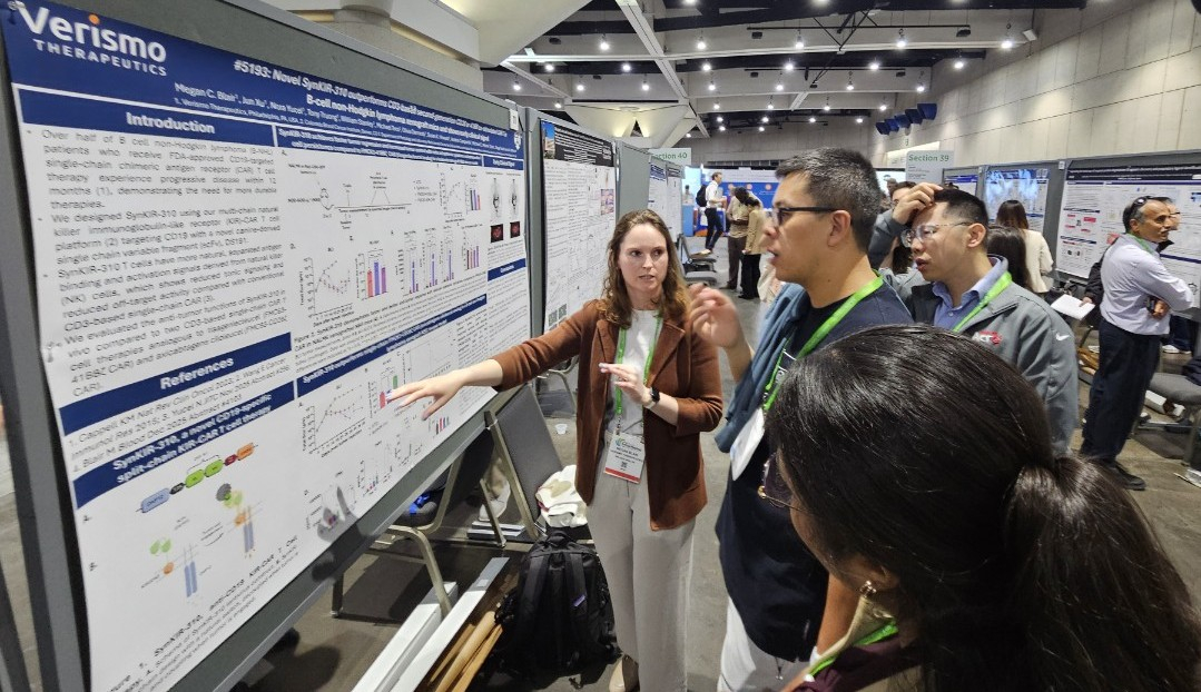 베리스모는 21일(현지시간) '세포치료 세션(Adoptive Cell Therapy 2)' 포스터 세션에서 발표했으며, 베리스모의 생체 내(in vivo) 전임상 연구 책임자인 메건 블레어(Megan C. Blair) 박사가 연자로 나섰다.