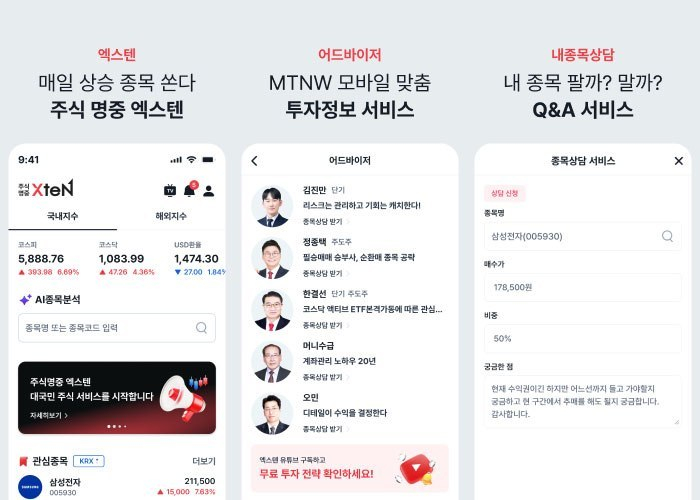 MTNW투자자문(엠티엔더블유투자자문)은 국내 주식 종목 상담 앱 '엑스텐'(X-TEN)을 정식 출시했다고 22일 밝혔다.