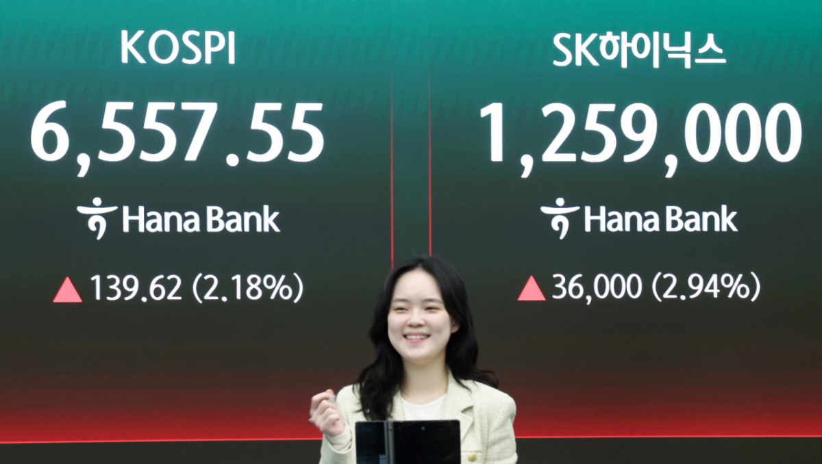 코스피지수는 장초반 2.18% 상승한 6557.76까지 올라 역대 최고가를 경신했다.