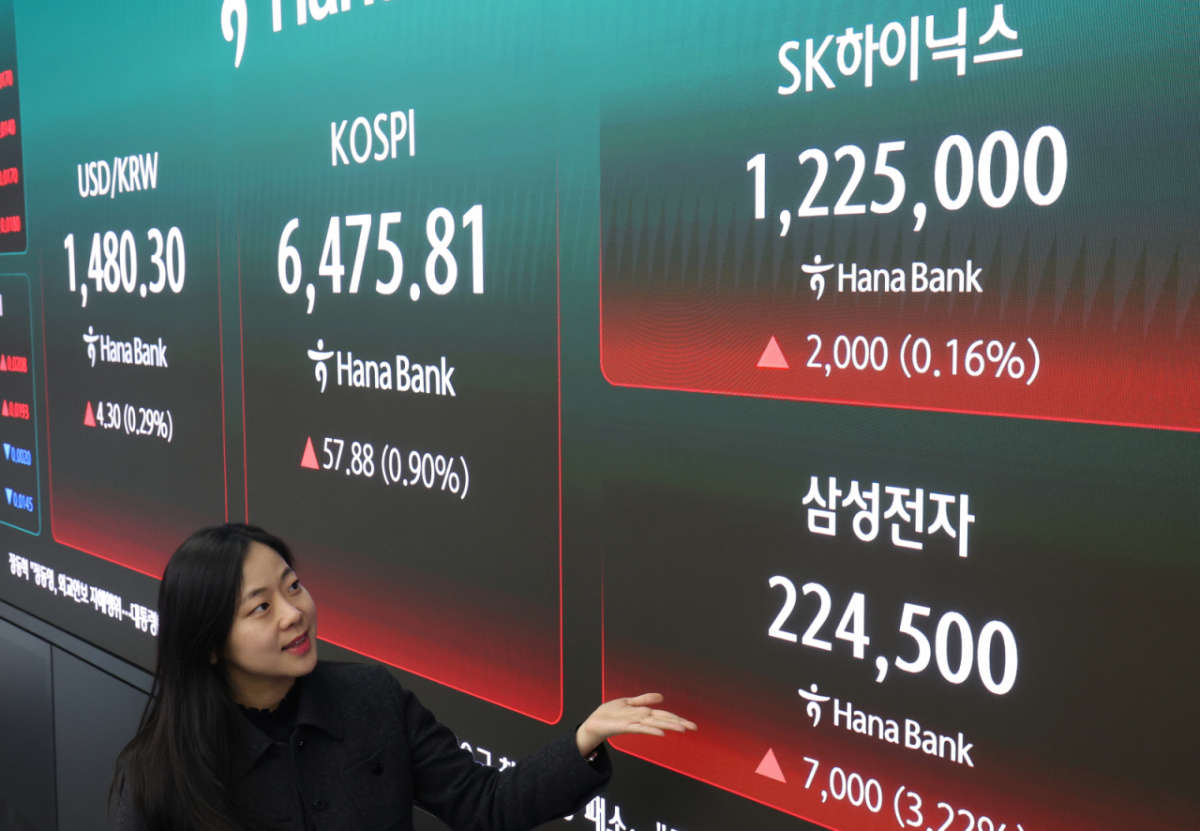 이날 코스피지수는 전일 대비 57.76포인트(0.90%) 오른 6475.81에 거래를 마쳤다. 종가 기준 사흘 연속 사상 최고가 경신이다. 장중에는 2.18% 상승한 6557.76까지 올라 6500을 처음 돌파했다. 하지만 장중 이란 테헤란 일부 지역에 방공망이 가동됐다는 등 중동 관련 소식들에 지정학적 위험이 재부각되면서 6309.10(1.7% 하락)까지 밀리기도 했다.