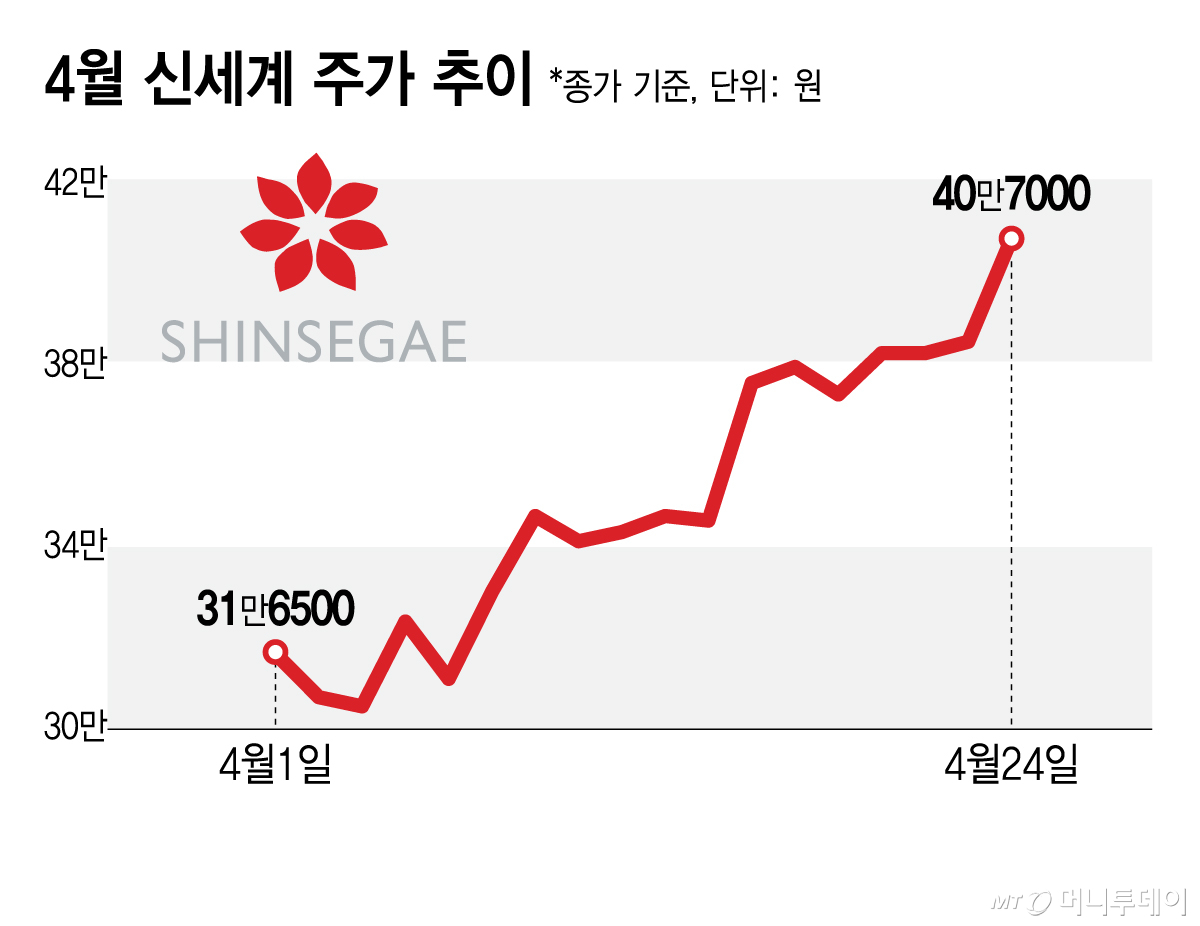 구체적으로 신세계가 전거래일 대비 5.85% 오른 40만7000원에 거래를 마쳤다. 이달에만 약 30% 가까이 주가가 뛰었다. 롯데쇼핑도 9.20% 오른 13만3000원, 현대백화점은 4.56% 오른 9만8500원에 마감됐다.