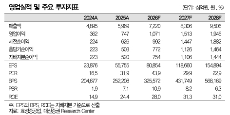 허민호 대신증권 연구원은 "현재 주가는 올해 예상 실적 기준 주가수익비율(PER)이 44배이지만, 글로벌 전력기 업체 중 가장 높은 밸류에이션을 받고 있는 GE 베르노바(GE Vernova)의 PER 50배 대비 낮은 수준"이라며 "초고압 전력기기 분야에서의 동사의 경쟁력과 향후 연평균 주당순이익(EPS) 성장률이 경쟁사 대비 높다는 점을 감안하면 주가는 그동안 상승에도 여전히 매력적"이라고 말했다.