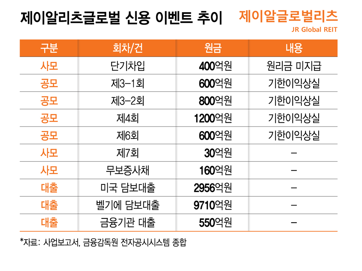 EOD란 채권 발행 회사가 채권 약정상의 사유(파산·회생절차 개시 신청 등)에 따라 만기 도래 이전이라도 채권 원리금을 즉시 상환해야 하는 의무를 말한다. 현재까지 EOD 발생이 확정 공시된 제이알글로벌리츠의 무보증사채 잔존 발행물량은 3200억원 규모다.