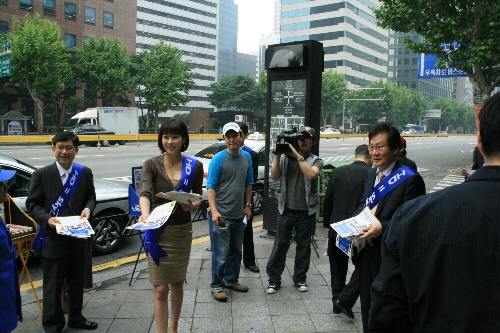 연예인 현영이 디지털 위성방송 스카이라이프의 다채널 고화질(HD) 상품 판촉을 위한 가두행사에 나섰다.