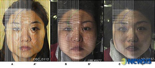 사진은 미세중력에서의 우주인 얼굴 형상변화에 대한 연구 결과로 지상(왼쪽)과는 달리 우주에서는 이마와 미간이 높아지고 턱이 작아지는 것으로 나타났다.(사진=한국항공우주연구원 제공)