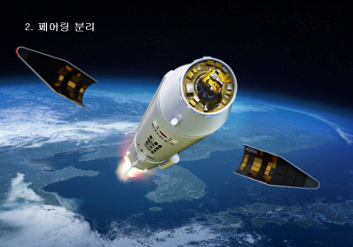 2. 발사 3분35초(215초)가 지나면 위성을 덮고 있는 페어링이 분리된다. 페어링 분리는 나로우주센터에서 고도 177km에서 이뤄진다. 실제 낙하되는 지역은 나로우주센터에서 2270km 떨어진 해상이다.