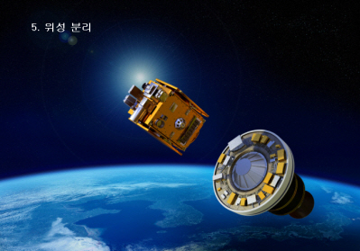 5. 발사 9분(540초)이 지나면 과학기술위성 2호가 2단에서 분리된다. 위성 분리는 고도의 기술을 요구한다. 위성이 순조롭게 분리되면 나로호 발사는 성공한 것으로 간주된다.