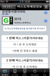 서울버스는 정류소별 버스의 도착 시간 등을 알려주는 아이폰용 어플이다. 노선번호나 정류소에 따른 버스 운행 정보에서 주변 정류소까지 찾아준다. 자주 이용하는 버스나 정류소의 경우에는 '즐겨찾기'를 통해 손쉽게 활용할 수 있다.