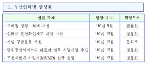 방통위는 "규제를 합리적으로 개선해 무선인터넷 이용을 활성화하고, 방송통신 서비스를 활용한 새로운 시장 창출을 지원할 것"이라고 밝혔다.