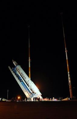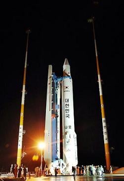 한국항공우주연구원에 따르면 나로호 기립은 완료됐지만, GMS에 대한 전기적 점검은 밤새 진행될 전망이다.