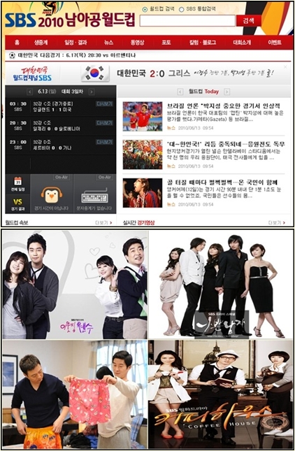 먼저 SBS는 지난 12일 오후 8시30분부터 한국 대 그리스 조별 리그 첫 경기를 방송했다. 하지만 한국의 2대 0 승리로 경기가 끝난 직후 SBS측은 한국팀 주장인 박지성 선수와의 인터뷰를 시도했으나 방송 상태가 불량해 결국 이를 내보내지 못했다.