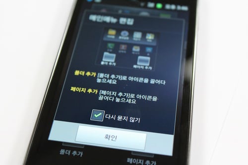 안드로이드에서는 홈화면에만 폴더를 만들 수 있다. 하지만 터치위즈 4.0에서는 메인메뉴 내에서도 폴더를 생성해 아이콘을 정리할 수 있다. 앱을 계속해서 설치하다보면 나중에 찾기가 힘들어지고 페이지 넘김도 많아지지만 폴더를 이용하면 적은 페이지로 깔끔하게 정리가 가능하다.