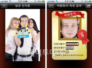 '오빠는 달라'는 아이폰 전용으로 폰으로 사진을 찍으면 그 사람의 바람기를 알려주는 앱이다. 남자든 여자든 사진만 찍으면 되는 간단한 앱이다.