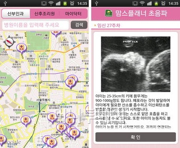 '병원찾기'에서는 전국 산부인과 병원과 산후조리원 정보를 제공한다. '재미있는 Test'는 마이크를 이용해 라마즈 호흡을 연습할 수 있고 초음파에서는 출산일을 등록했을 경우 해당주차 아기 초음파사진을 보여주며 관련 정보를 제공한다.