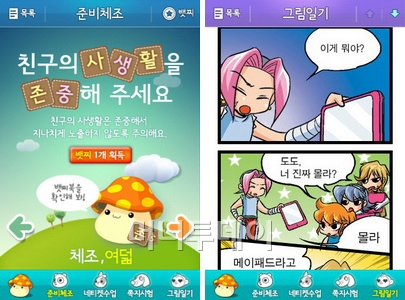 메뉴는 준비체조, 네티켓수업, 쪽지시험, 그림일기로 구성되어 있다. 준비체조는 네티켓을 배우기 위한 준비 단계로 간단한 체험과 네티켓 십계명을 배울 수 있다.