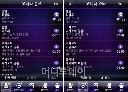 이제 이런 감동을 '오페라 튠즈'라는 앱를 통해 느껴보자. 애플 앱스토어에서 1.99달러에 내려받을 수 있는 '오페라 튠즈'는 127곡의 유명 오페라 곡이 담겨있다. '오페라 스타'에서 들었던 명곡들을 한번에 들을 수 있고, 작곡가와 작품명, 연주자별로 곡을 검색할 수도 있다.