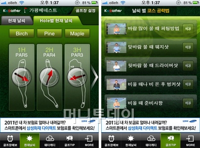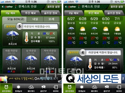 '골프날씨'는 예보, 현재 날씨, 홀별 풍향·풍속정보 등 날씨정보와 홀별 코스 공략법, 날씨별 코스 공략 동영상을 제공하는 등 골프와 관련된 다양한 콘텐츠와 기능으로 구성돼 있다.